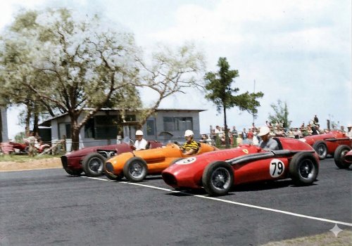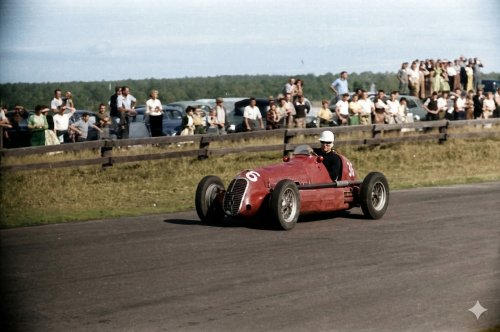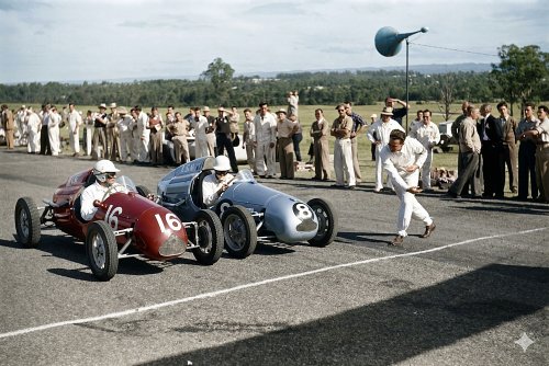As a person who has been involved with professional motor racing and professional motor racing photography over the last 70 odd years I feel the results are outstanding. There are critics of colouring historical photos who say that the photos should remain as is - in black and white, but the reality is that they raced in colour !
