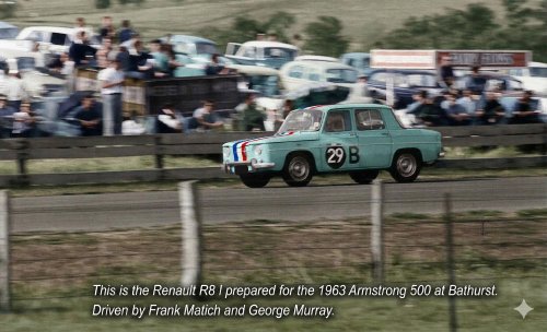 As a 21 year old working for Frank I was given the task of preparing the R8 for Bathurst. We drove up in the car on the Friday, practiced on Saturday, raced on Sunday (7th. in class) and drove home on Monday.