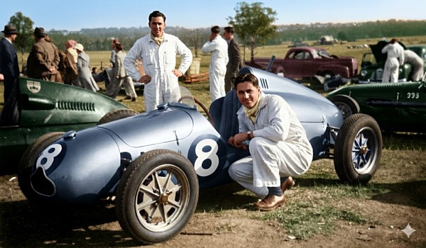 What a great photo with which to open this collection . Stan Jones of Victoria, ( father of 1980 F1 World Champ. Alan Jones ) left, with mechanic Charlie Dean and the famous Maybach 2. Stan Jones won the 1959 Australian Grand Prix at Longford , Tasmania in a 250F Maserati.